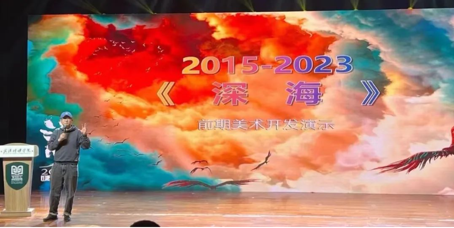 中国著名美术设计,国际动画导演,动画电影《深海》美术指导、美国动画《雾都孤⼉》、法国动画《Zarafa》、《围棋少年》、《哪吒传奇》、《神奇四侠》执⾏导演翁铭老师则从今年上映的动画电影《深海》讲起,他认为《深海》是国内动画电影人的一次大胆实验。它用中国传统美术呈现三维动画表达的“粒子水墨”,突破二维动画与三维动画壁垒的内容设计,融合了润物细无声的东方感。《深海》在传媒技术上将细化做到了极致,但今后的优秀作品一定能够继续在该领域继续开疆拓土,突破新高。希望以后在动画行业的同学们,能够将更多更具有创造性的艺术搬进大屏幕。