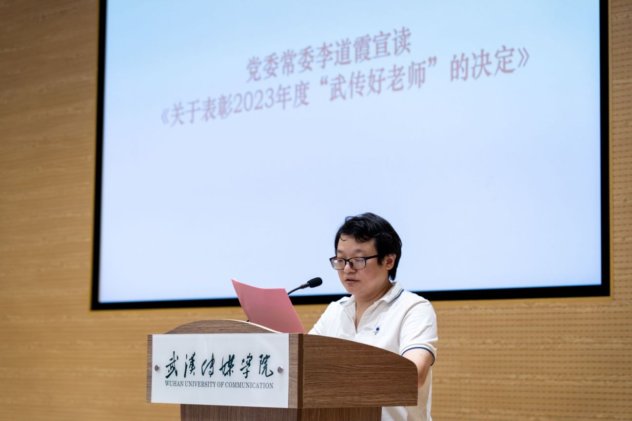 大会在全体起立奏唱中华人民共和国国歌后正式开始后,我校马克思主义学院院长张燕明、教学质量评估中心主任李道霞分别宣读了《关于表彰米兰体育网页版登录志愿服务先进个人的决定》和《关于2023年“武传好老师”评选结果的公示》的表彰文件内容。