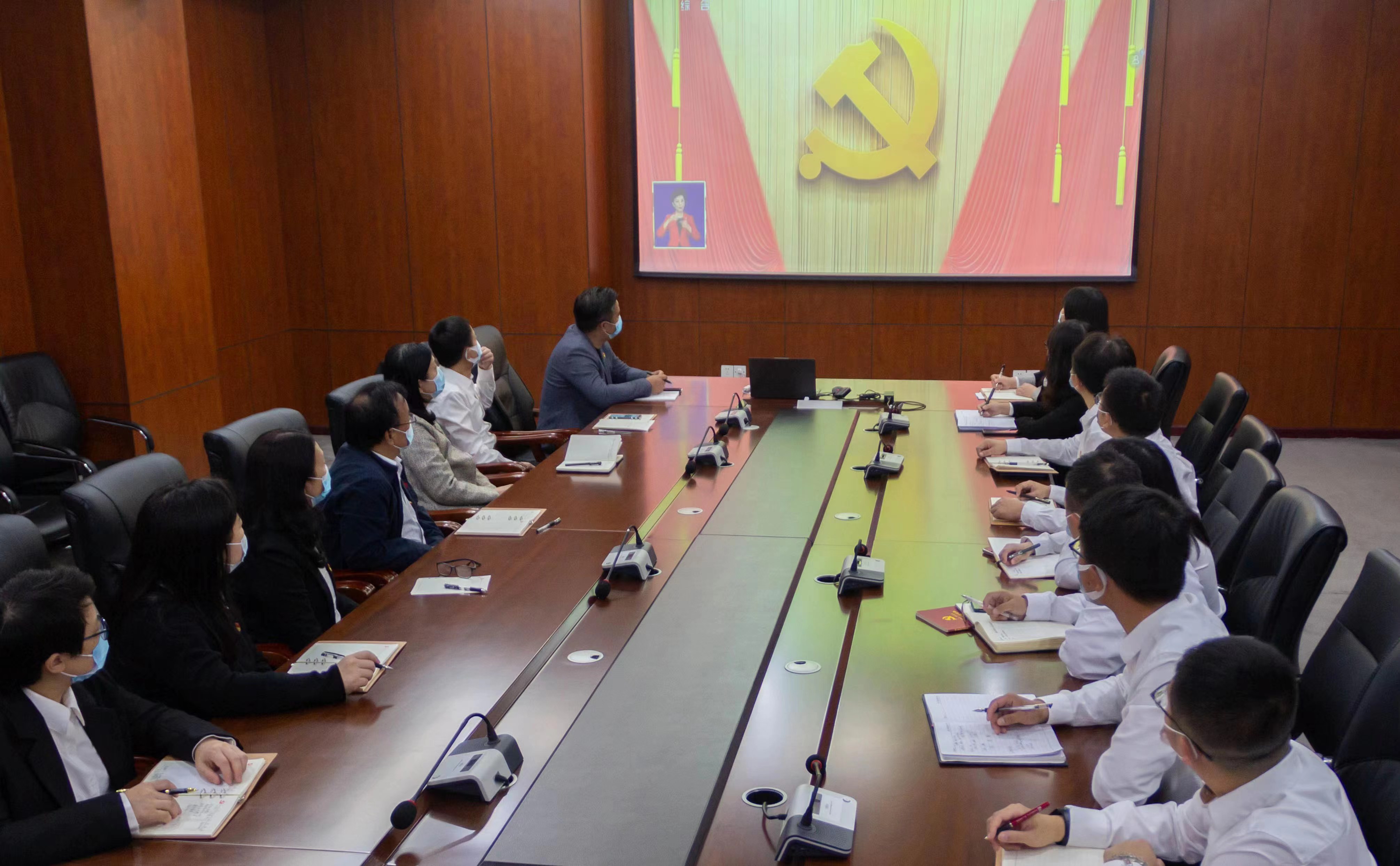 在圆形报告厅,学校各直属支部党员教师一起收看大会直播。