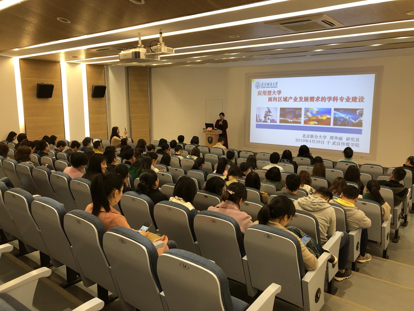 武传新闻网讯 4月28日下午,我校举办了“应用型大学面向区域产业发展需求的学科专业建设”专题讲座,邀请北京联合大学师范学院科研处处长周华丽教授主讲。行政职能部门中层干部、各学院院领导、教研室主任共70余人参加,校长助理、人事处处长姚晓菊主持。