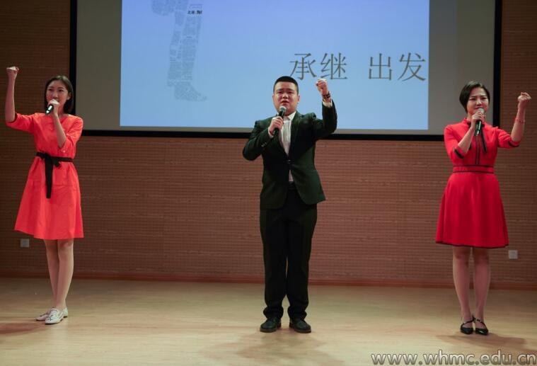 随后,我校播音与主持艺术专业学生带来了朗诵《承继·出发》。学生们深情朗诵了人民日报社战地记者焦翔、中央电视台西藏站站长陈琴、今日女报社残疾记者谭里和坚忍不拔行走在新闻一线的故事,在“记者节”这一特殊的日子表达对他们的敬意。最后,武汉集邮协会叶会长和常务副校长宗微共同上台为记者节邮票首发揭幕。据介绍,这是首次发行记者节纪念邮票。纪念邮票中间是一支笔,旁边配有信签纸、麦克风、摄像机、照相机、演播车等与新闻相关的元素。