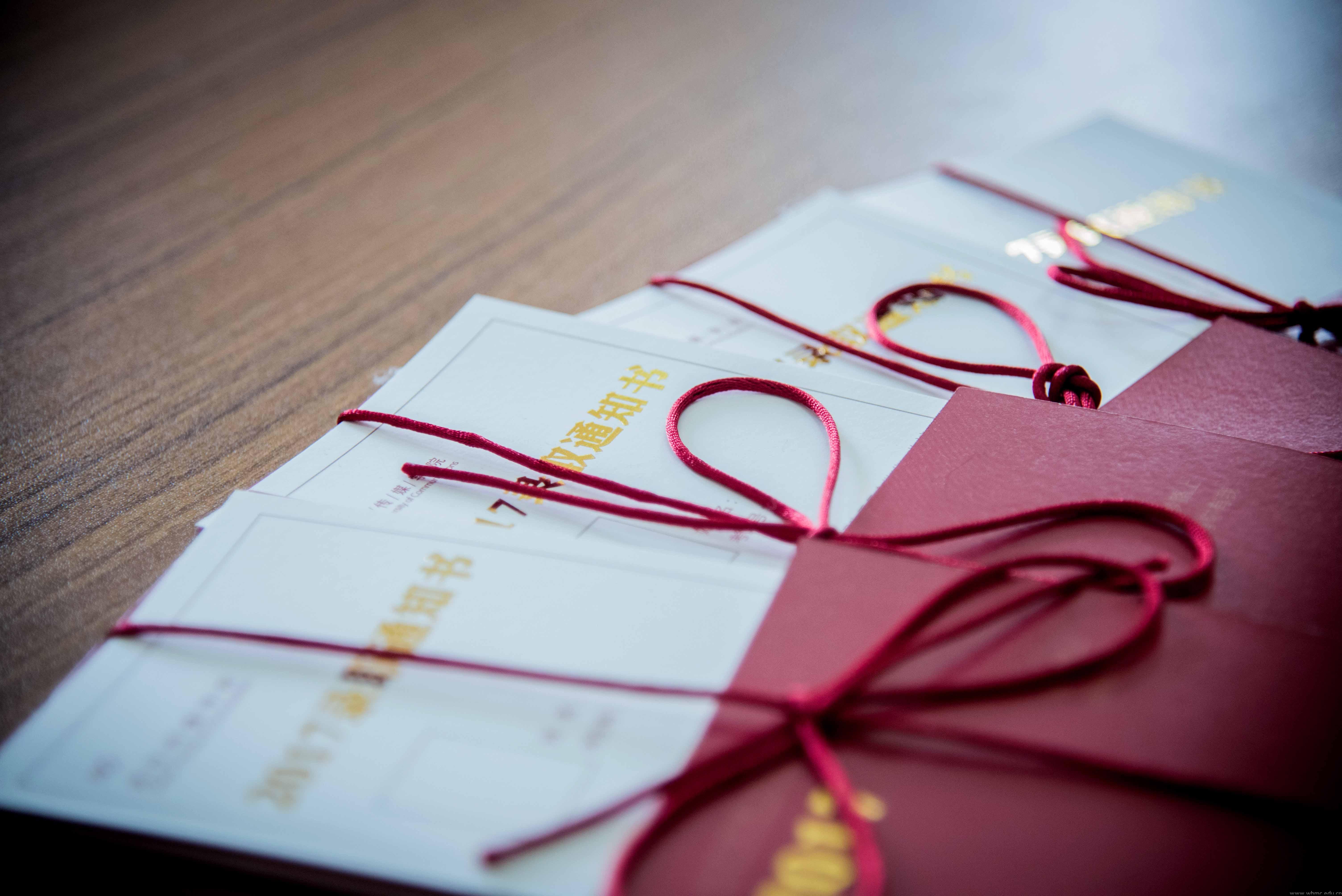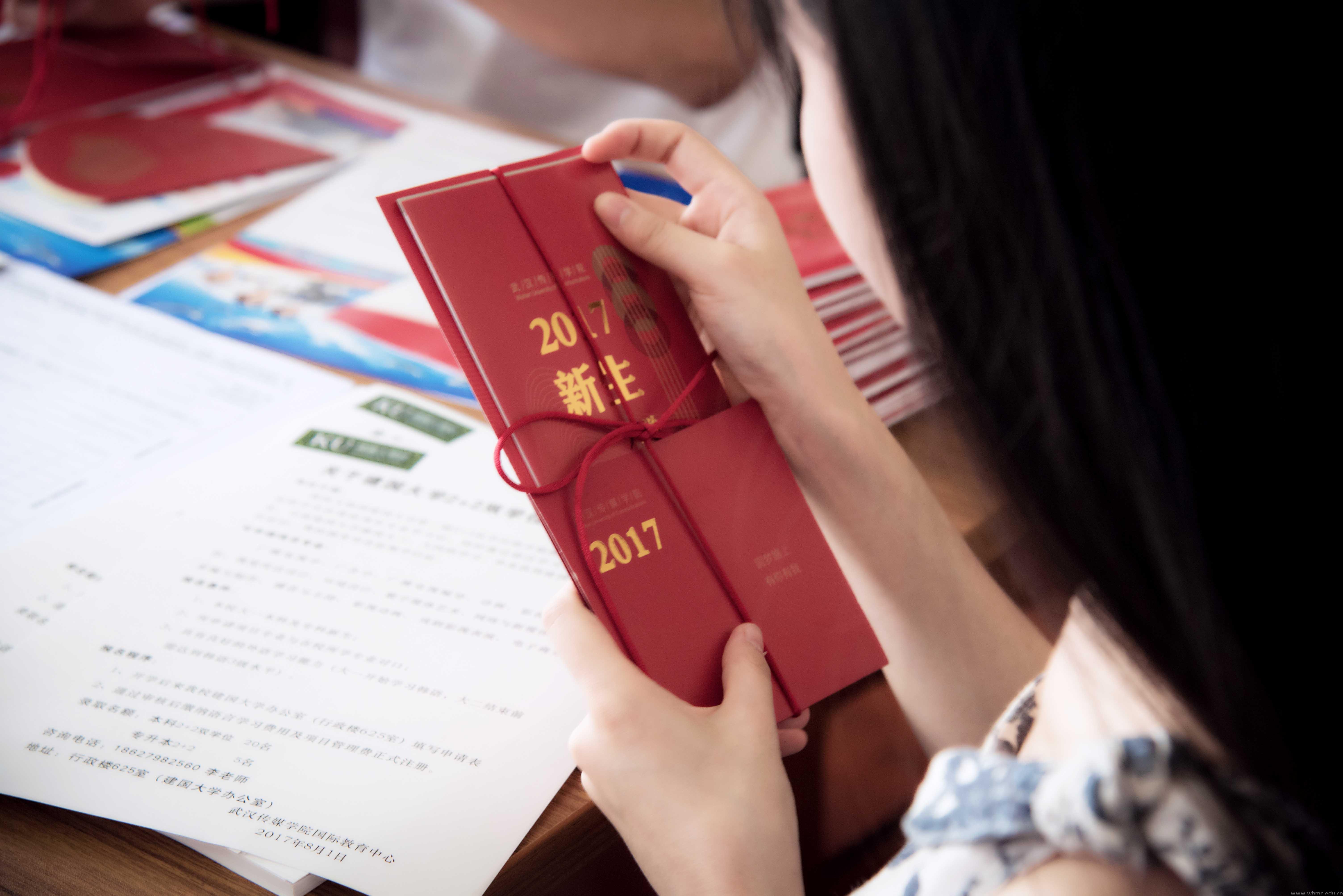 今年录取通知书延续去年以红色为主色调,但设计上更加新颖。录取通知书包裹打开,是一叠用红色中国结线包好四边,正中间系着漂亮蝴蝶结的录取通知书。设计师姚田老师希望每一位新生在打开录取通知书的时候,能够有像打开礼物时一样的惊喜。