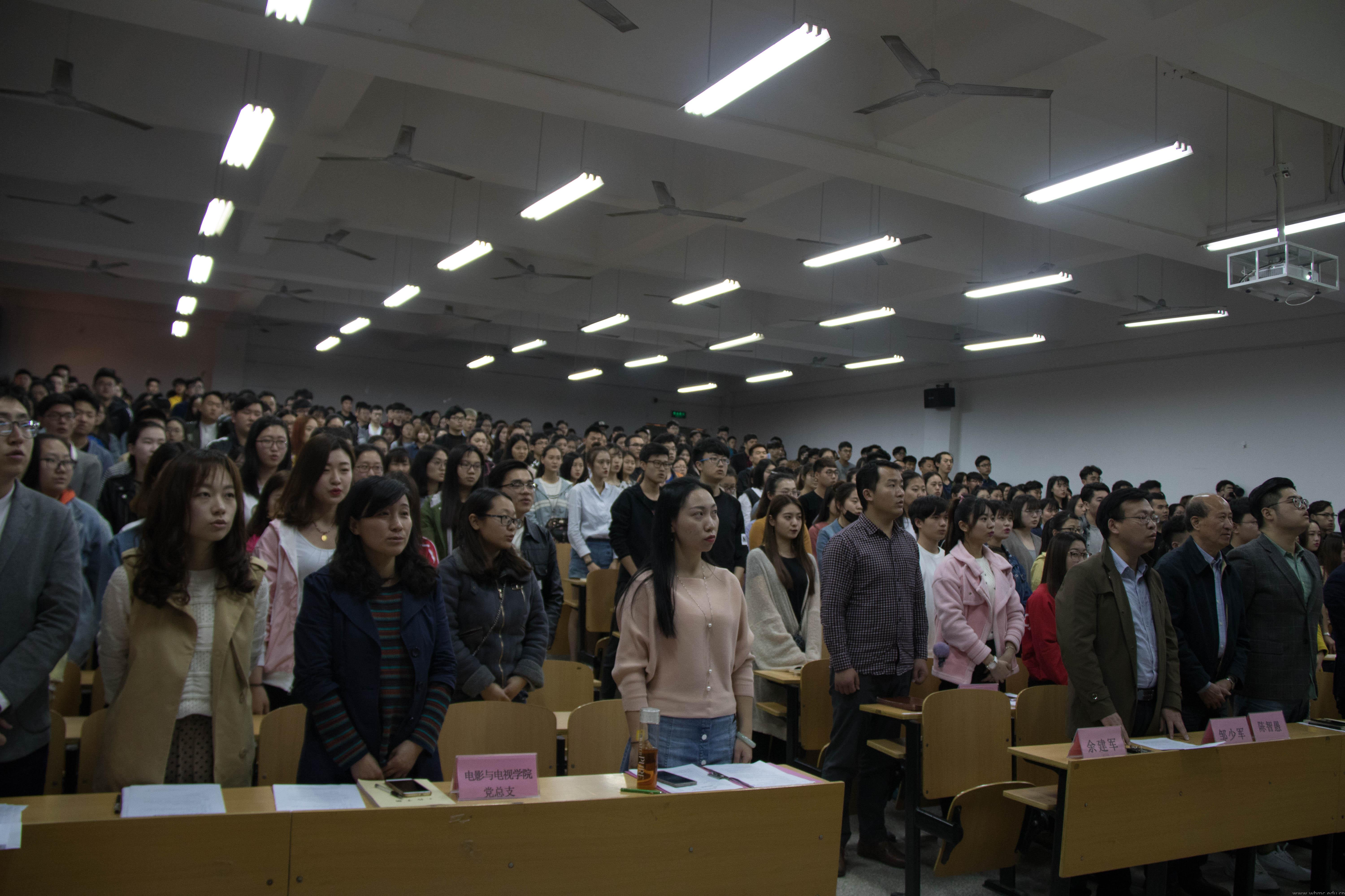 在嘹亮的国歌声中,开班典礼拉开了序幕。上一届党校培训班优秀单位电影与电视学院作为代表进行成果展示,辅导员陈磊汇报了该院第25期党校的实践活动成果,并总结了4点经验:观,观红色经典电影,比如《郭明义》《建国伟业》;感,感受经典红色电影里优秀党员的责任和精神;读,以小组为单位阅读党的知识相关书籍,比如《毛泽东思想》;问,如何做一个好的入党积极分子。