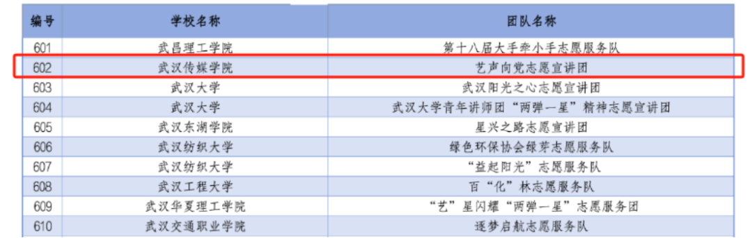 武传新闻网讯(通讯员 陆迪)4月3日,团中央青年志愿者行动指导中心在微信公众号“中国青年志愿者”上,公布了有关“2024年全国大学生‘两弹一星’精神志愿宣讲团”“2024年全国大学生井冈山精神志愿宣讲团”以及“2024年全国大学生延安精神志愿宣讲团”的团队入选名单。来自我校的“艺声向党”志愿宣讲团接连在全国上千支申报团队中脱颖而出,均入选其中。