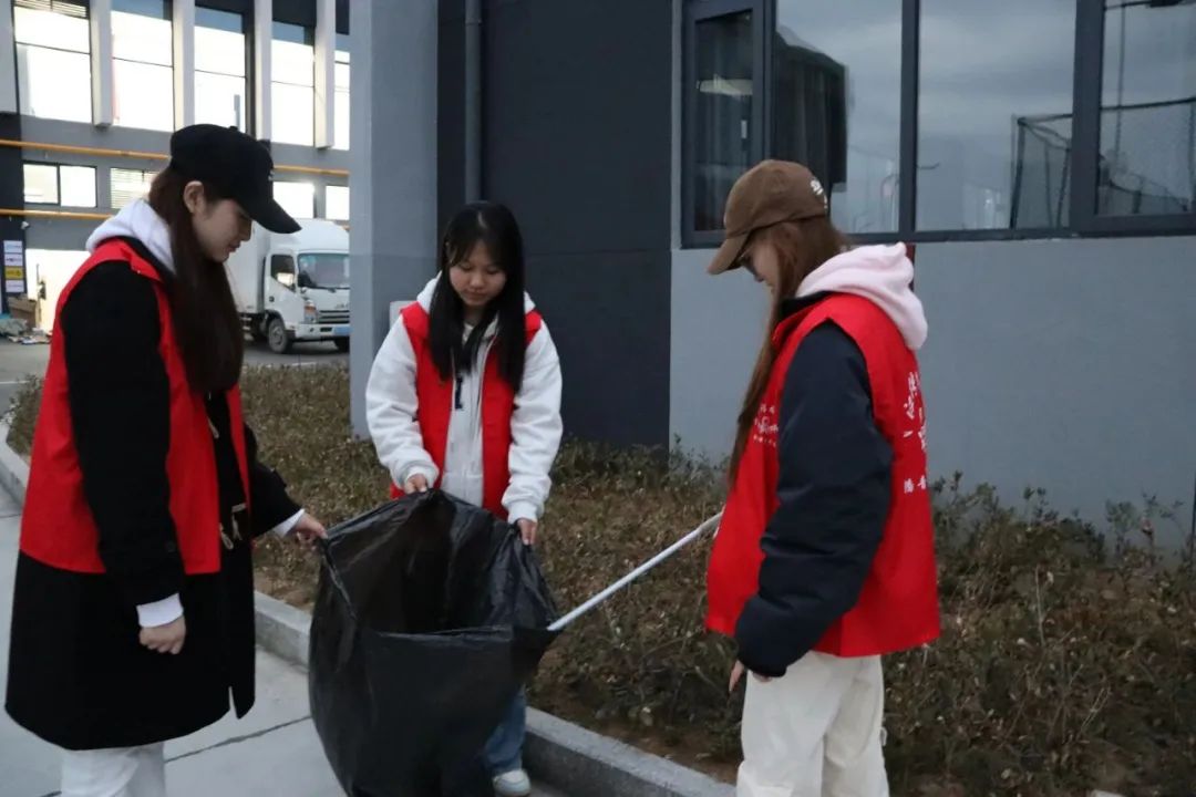 分享会结束后,学生志愿者们手持扫帚、簸箕,分工合作,有条不紊地清扫着校园里的每个角落,用实际行动践行着雷锋精神。