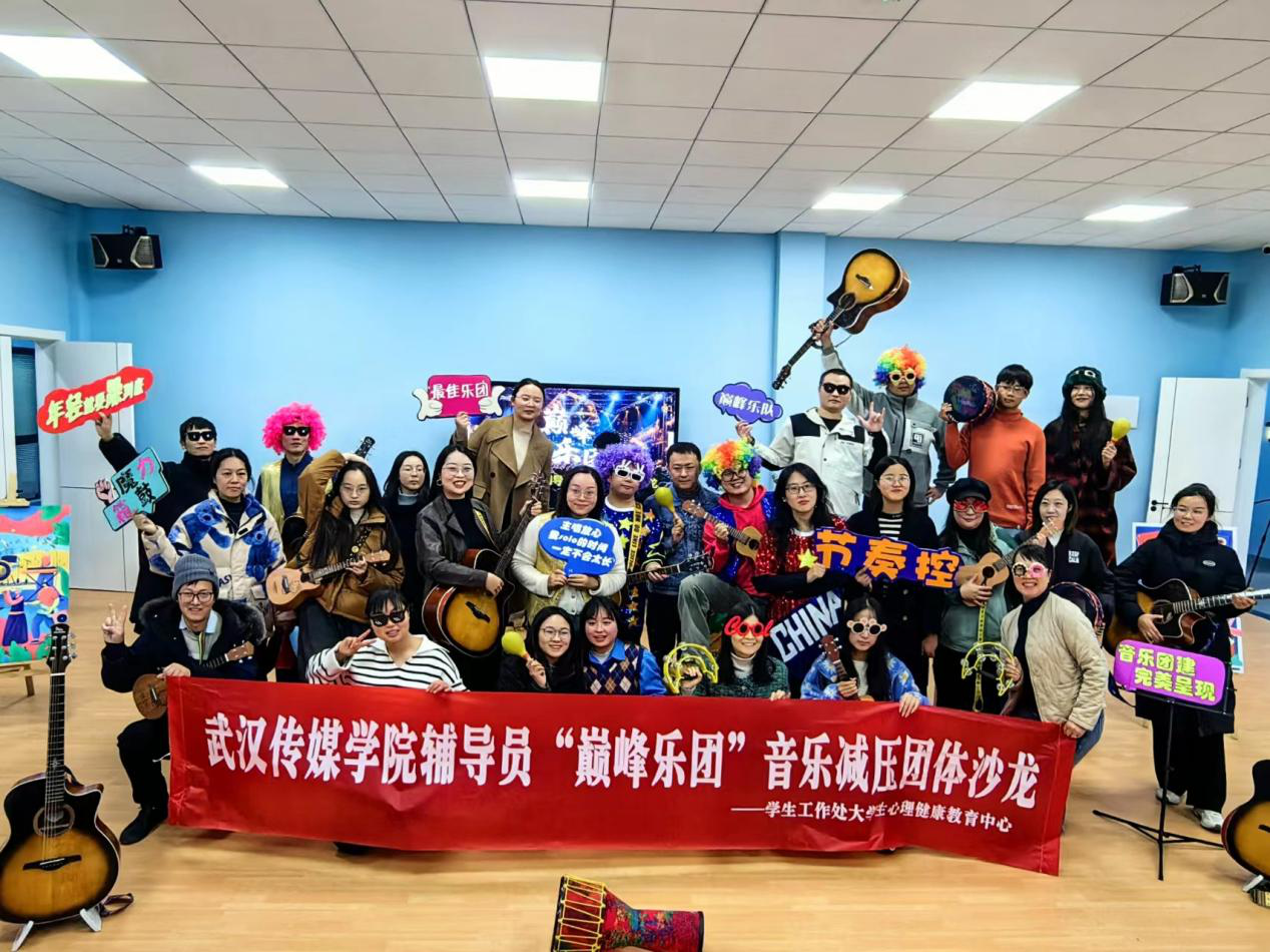武传新闻网讯(通讯员 董维)为加强辅导员队伍建设,缓解辅导员工作压力,激发工作热情,12月7日,我校大学生心理健康教育中心在大悟校区心理中心团体辅导室举办了辅导员“巅峰乐团”音乐减压团体沙龙。