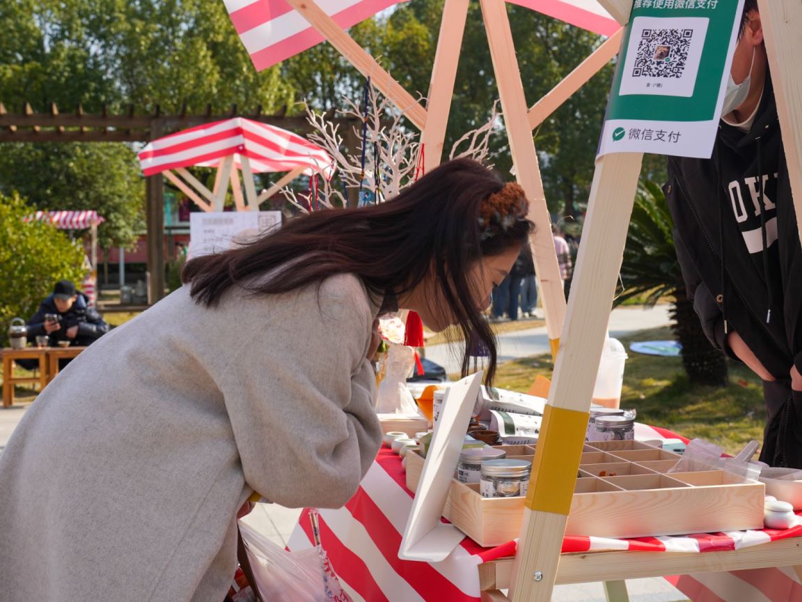 活动现场,还有花艺、文创、游戏等区域,不仅符合当下的时令需要,又满足了大多数的受众需求。在被问及承办单位的准备工作时,活动负责人陈曰表示,除了要准备“燃冬”购物节前期的招商、招展的筹备工作以外,团队成员还要负责平台搭建和展品展销工作,活动现场的所有展示位也都是成员们自行组装的结果。