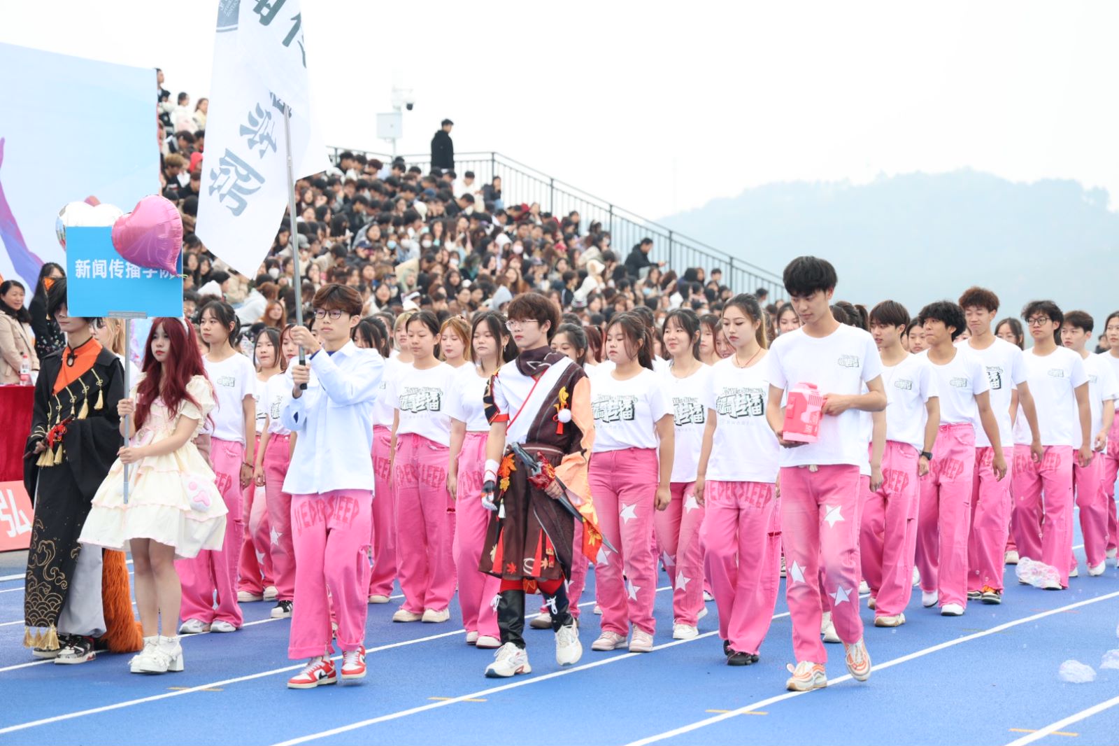 紧随其后的是,我校新闻传播学院、播音主持艺术学院、文化管理学院等六个学院代表方队的入场表演。在表演过程中,各学院代表队皆以昂扬向上的精神面貌参与此次表演,同时在节目挑选上,也别出心裁,更符合专业特色。