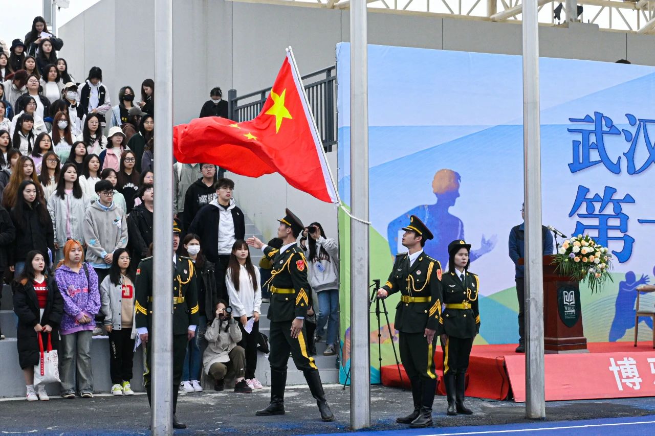 随着各学院代表方队的演出落幕,大悟校区行政代表队、裁判员代表队依次入场,在观众的注视和掌声中依次经过主席台接受校领导的检阅。