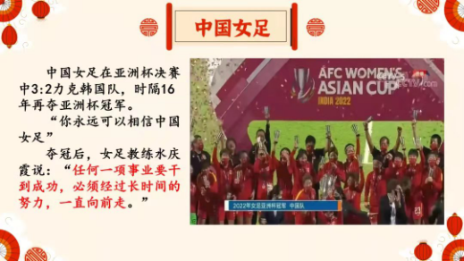 在2022年春季返校第一天晚上,黄好开展了一次以“你一定要相信”为主题的特色晚点名,通过讲述了中国女足、中国科技、中国人的浪漫、中国青年四个故事向学生传达了“更快、更高、更强、更团结”的冬奥精神。她说:“此次北京冬奥会将中国式浪漫融入到每一个细节中,匠心独运,希望各位同学能够积极借鉴与学习,感悟设计的魅力,理解浪漫的真谛。”