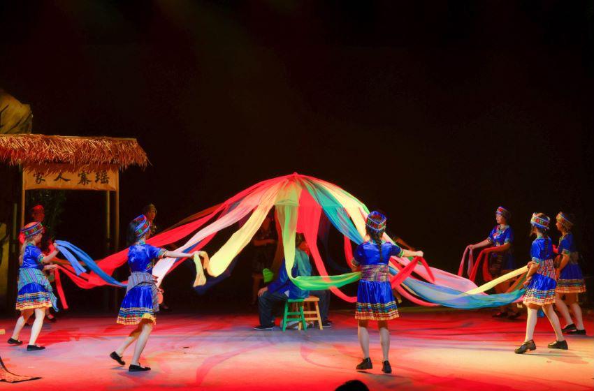 全剧共分为情寄瑶山、共绘蓝图、“绣”美瑶寨以及喜庆丰收四幕。