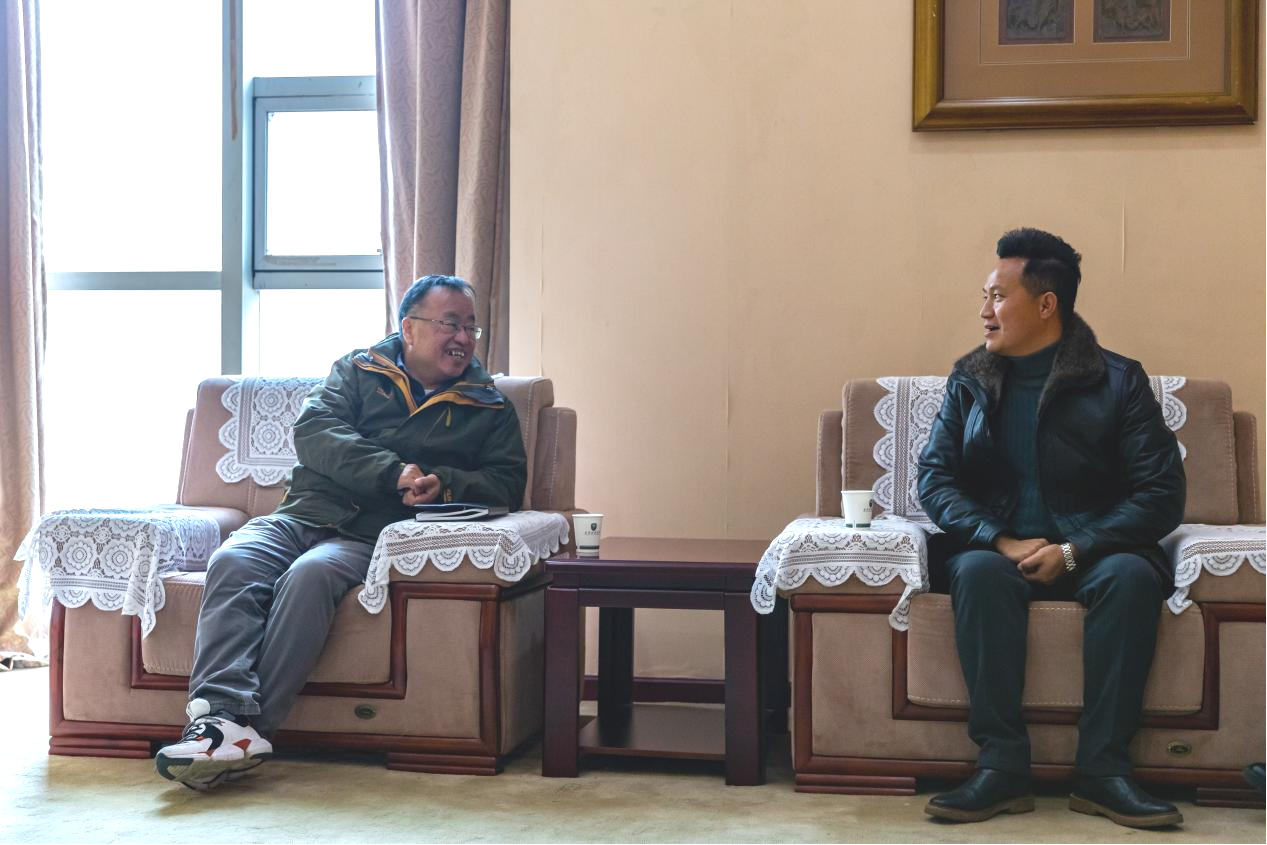 校党委书记郭新力、纪委书记蒋萦、党委组织部副部长李奉天同他们进行了友好会谈,乡村振兴工作队第一书记肖帅陪同。