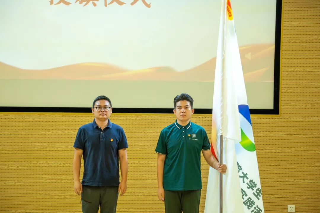 校团委书记瞿宗巍介绍米兰体育网页版登录2023年暑期“三下乡”社会实践活动准备情况,党委学生工作部部长余恺为团队代表授旗。