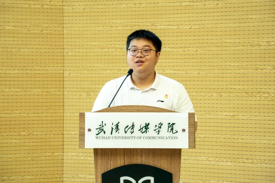 来自播音主持艺术学院艺声向党团队负责人郑海涛同学作为“三下乡”暑期社会实践团队代表发言。他代表全校参与暑期社会实践的青年学生庄严承诺:一是筑牢理想信念的坚实根基;二是保持自找苦吃的奋斗姿态;三是锤炼堪当时代重任的过硬本领。