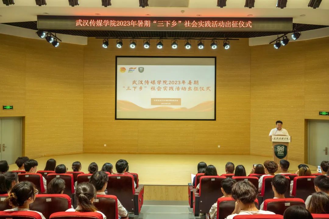 (武传新闻网讯 通讯员 华震东)为深入学习贯彻习近平新时代中国特色社会主义思想,全面贯彻落实党的二十大精神,引导广大青年在社会实践中“受教育、长才干、作贡献”。6月30日上午,米兰体育网页版登录2023年暑期“三下乡”社会实践活动出征仪式在圆形报告厅举行,党委副书记、常务副校长宗微,党委学生工作部部长余恺,校团委书记瞿宗巍,校团委副书记蒋璐璐,各学院团委书记、学生代表出席仪式,仪式由校团委专职团干华震东主持。