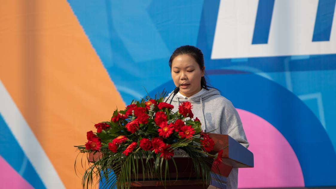 运动员代表雷冰和裁判员代表危雨晴宣誓后,各个学院代表方阵依次入场。随后学生工作处副处长余凯宣布比赛正式开始。