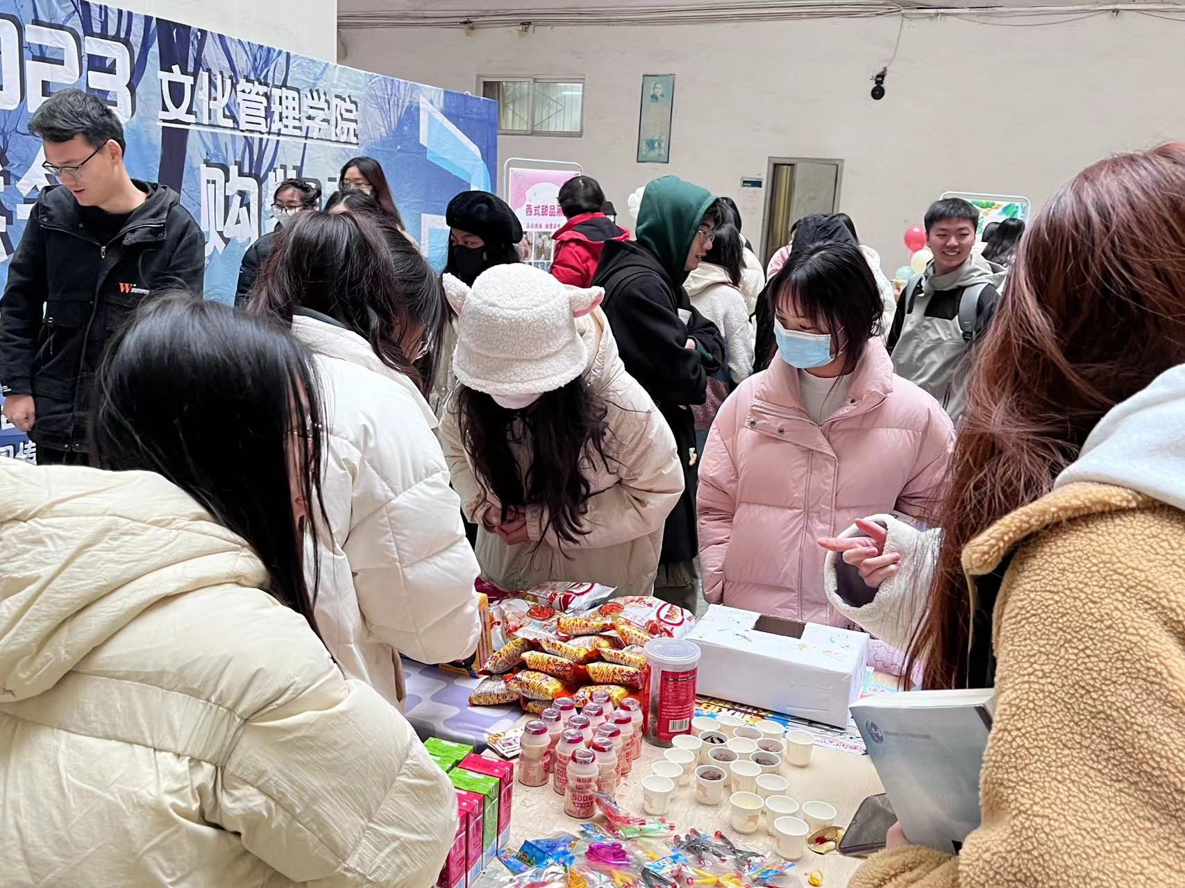 此次购物节活动在我校5号楼一楼中庭举办,采用线下一站式展销的方式来展示、宣传和售卖商品。据悉,第四届“燃冬•购物节”共有暖冬服饰品展、中式传统小吃展、西式甜品展、零食展销会、方便速食展销会和校园文创展销会六个子项目,分别由会展B2001班暖冬服饰店、兜着走小吃店、尝点甜头团队、財源广进发財组、一人食小店和文创来“袭”组六个团队承办。