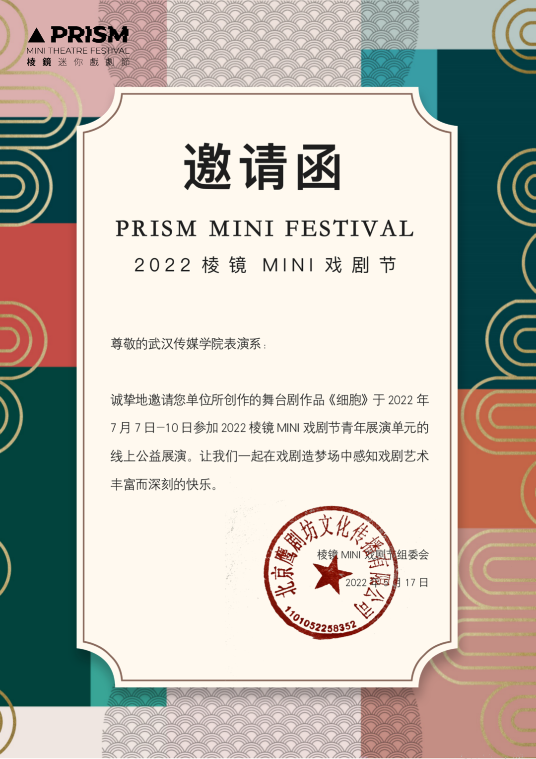 由电影与电视学院码字主持,跟你讲讲表演系「杨培涵老师」指导的舞台剧,受邀「2022棱镜MINI戏剧节」的故事,从中探索戏剧新生活~为表诚意,邀请函先发为敬。