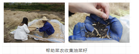 村落的田间,有位老爷爷穿插在田地里辛勤劳作。淳朴的老人向大家讲解了油菜籽的来源以及采集油菜籽的方法。在菜农爷爷的指导和讲解下,学生们主动尝试帮助爷爷筛取菜籽,虽然和专业农民相比还有不小差距,但通过亲身体验,大家都学习到了关于油菜的知识,了解到了粮食的来之不易。