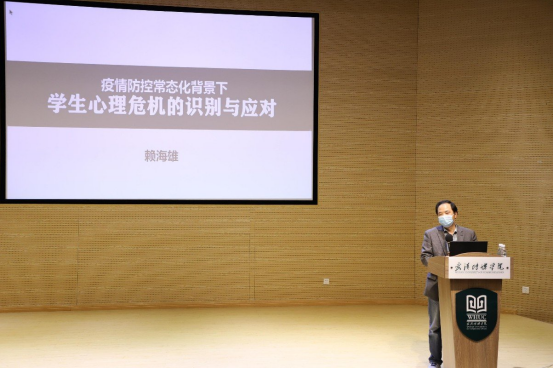 讲座主要分为三个部分:首先,赖海雄教授指出,因受疫情影响,学生心理危机处于多发期,很容易产生心理异常,因此掌握心理健康知识以及学会应对心理危机尤为重要;其次,赖海雄教授提出“听其言、观其行、察其色、辨其类”的十二字方针,结合实际案例,阐释了什么是心理危机,如何识别心理危机学生以及出现心理危机如何干预;最后,赖海雄教授总结了如何应对学生心理危机的措施,使疫情防控常态化下学生心理疏导更具指导性。