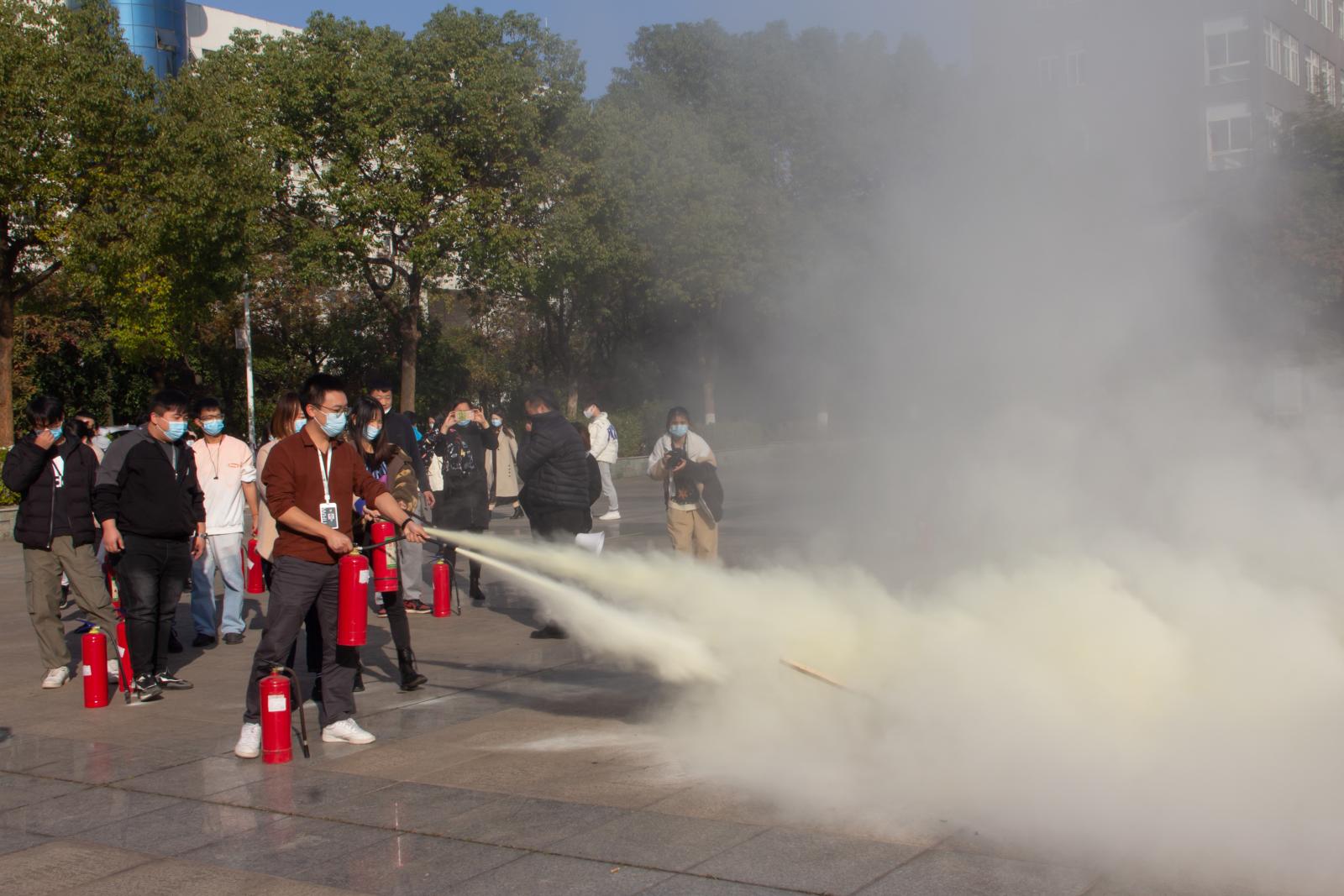 演习结束后,总指挥涂志超组织演习人员在行政楼后广场进行了消防器材使用演练,并对对灭火器进行讲解和演示。演习人员在保卫处的指导下正确掌握了灭火器的使用方法。