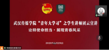 活动开始,播音主持艺术学院的张梓杰说:“哪有什么岁月静好,只是有人为你负重前行。”他深知作为一名共青团员的职责,在疫情中,他主动投身街道疫情宣传防控,去走街串巷的宣传。春的脚步不会因为一场风雪而停下。无独有偶来自设计学院的蓝嘉欣也讲述了自己疫情期间的志愿者生活,“封城不是封心,封的是疫魔。”这是蓝嘉欣的结尾语,也是大家共同的心声。活动中身为班长兼团支书的丁伊豪,也在疫情网课期间用自己的方式承担着自己作为一名共青团员的职责,在声声督促中与大家共同进步。