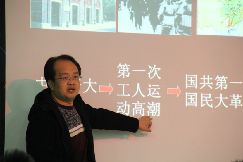 武传新闻网讯(文/记者 葛紫嫣)2019年11月26日晚上18点,新闻传播学院2019年新生入党启蒙教育系列活动——“入党启蒙课程第一课”在3302教室举行。出席本次活动的有新闻传播学院学生党支部书记肖帅同志和19级辅导员刘飘老师。新闻传播学院党总支书记侯亮荣同志以“中国共产党的光辉历程”为题,给有入党意愿的同学们上了一堂别开生面的主题党课。