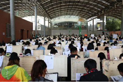 3日上午8点30分,被安排在米兰体育网页版登录考点的考生们随着现场工作人员的引导,陆续进入考场。等待他们的,是素描、速写、色彩3个科目的考试。中午12点30分,考生们已经完成两个科目的考试,随处可见仓促吃着午饭的考生,站着、坐着、蹲着……本次考试于下午5点30分正式结束,学生们大多在指导老师的带领下乘坐大巴统一离开。