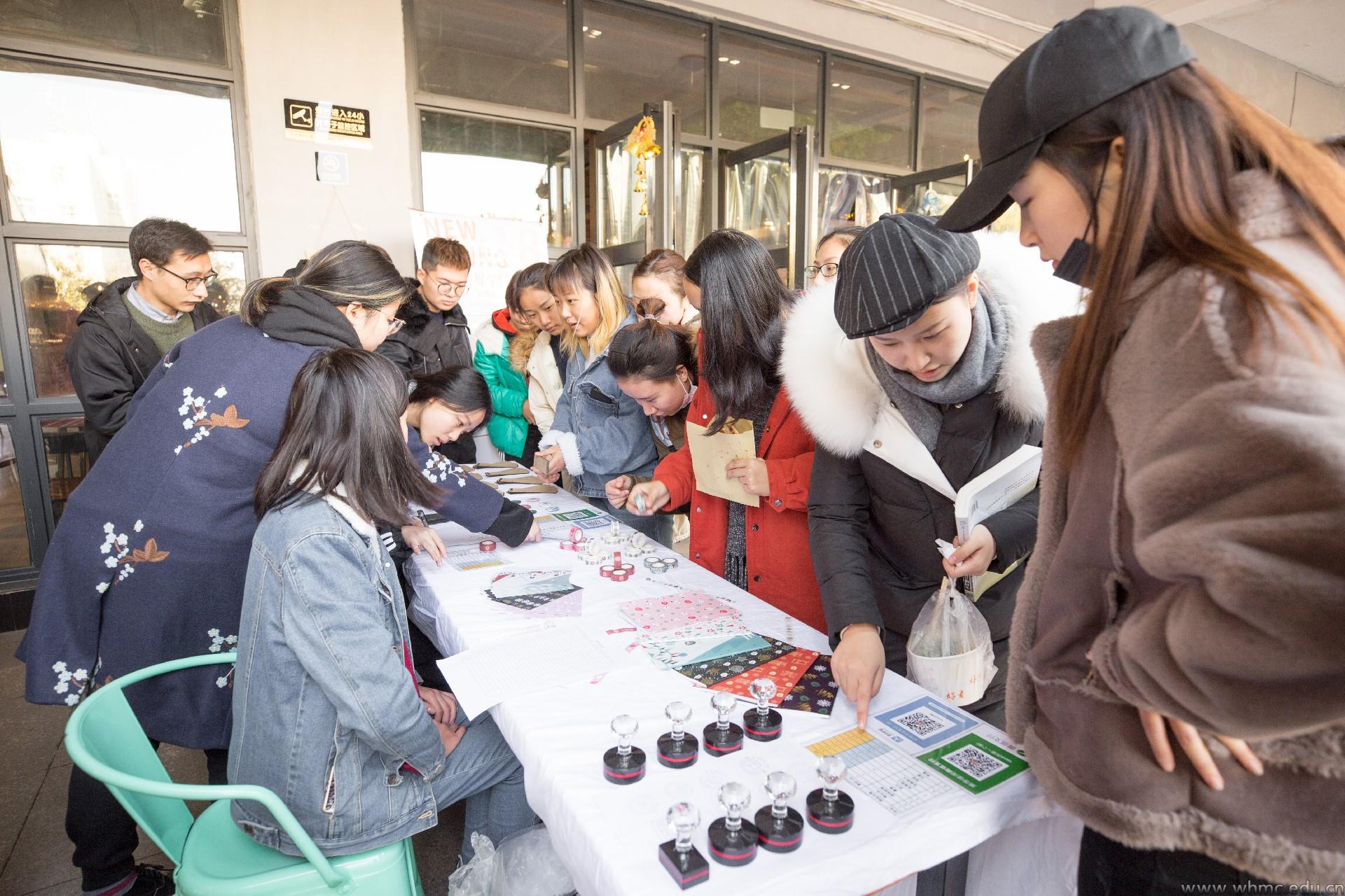 武传新闻网讯(文/记者 萱萱 见习记者 张紫薇 王文琪 图/摄影见习记者 黄子婧 朱兴)“快来看,校园版丝巾、书签、徽章……”12月20日中午,食堂门口分外热闹,一场由设计学院师生设计的校园文创产品展销会正在这里举行,短短3小时,就卖了2600元的产品。