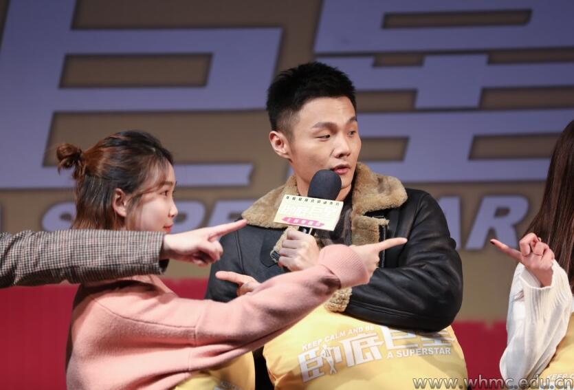 最为期待的互动环节中,我校5名学生上台与导演谷德昭和李荣浩进行“谁是卧底”的游戏。7人随机抽取带有图片的抱枕,抽到杂酱面的人即为卧底,其余人均是热干面。随后,众人对自己抽到的面类进行描述并需找出卧底。游戏进行到后半部分,主持人解说时透露卧底已经非常明显。李荣浩幽默逗趣的一句“我怎么没看出来哪里明显”,引得现场观众们笑声连连。