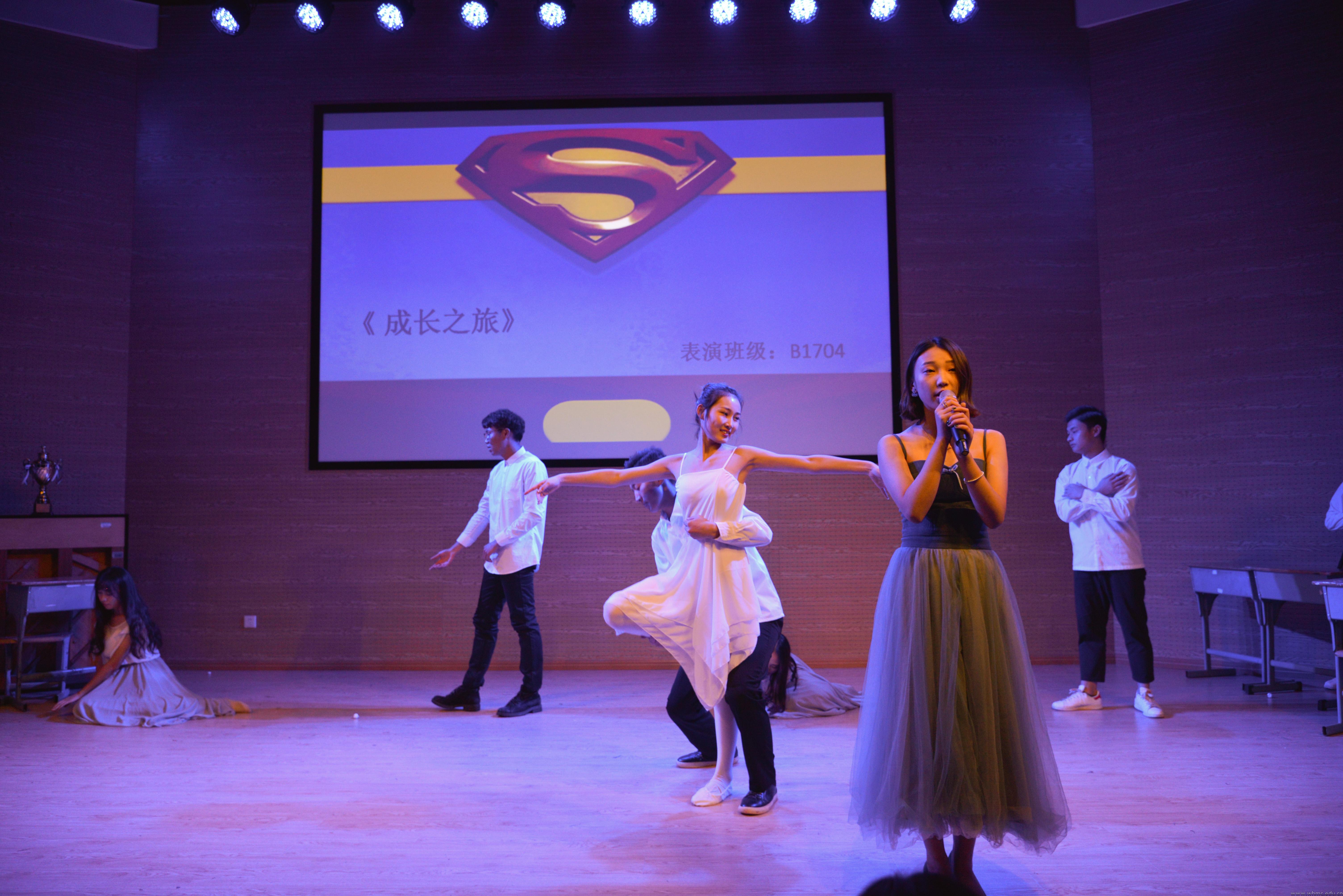 播音与主持艺术专业B1709班,走起“国际范”。一段节奏明快的印度交谊舞迅速吸引观众的眼球,学生们踏着异域风情的音乐转圈跳动,“八百标兵奔北坡”的绕口令也摇身一变成了印度神曲的歌词。