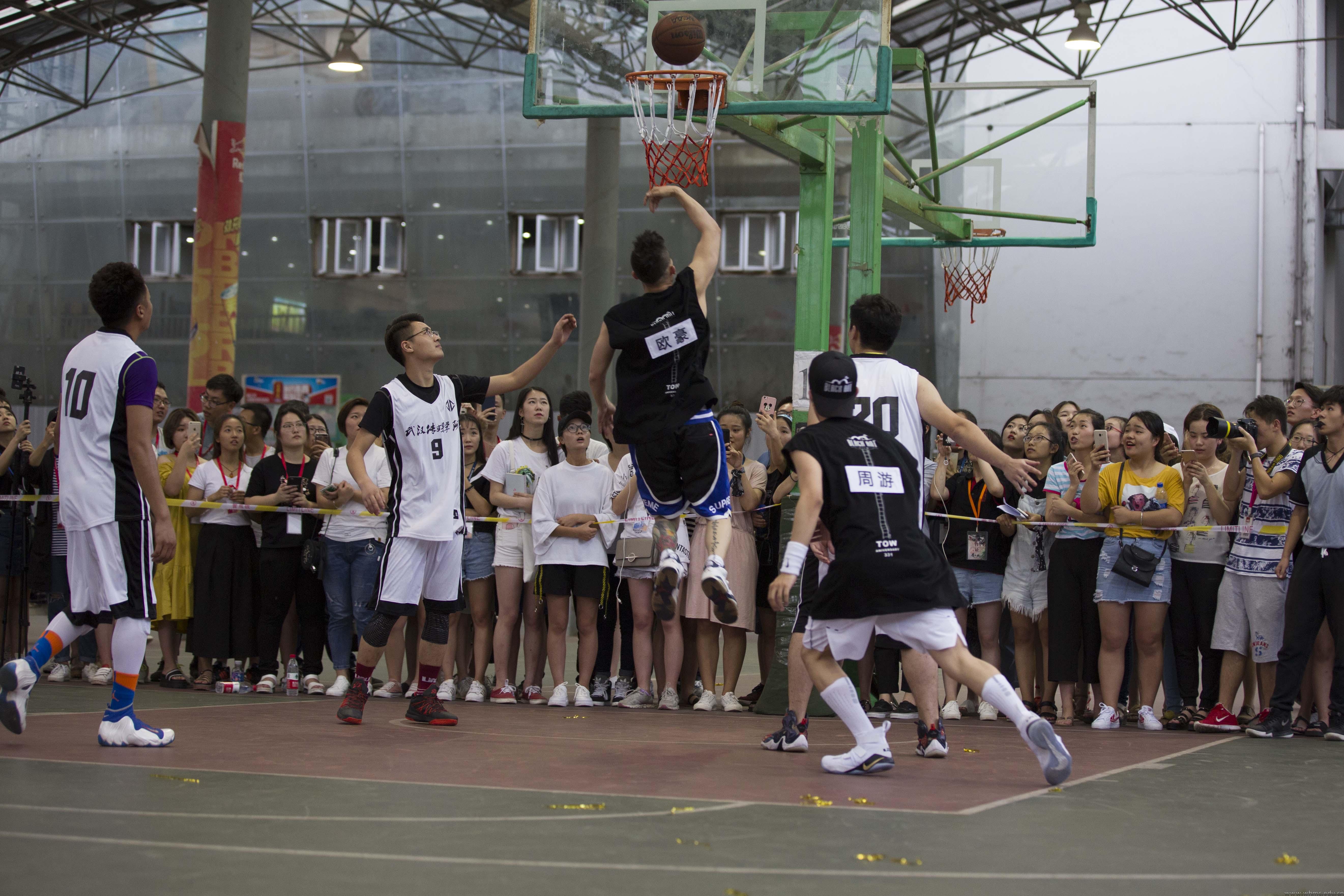 交流结束,“青禾男团”来到风雨篮球场向我校校篮球队发起挑战,明目张胆的“踢馆”点燃了现场观众的热情。校篮球队毫不懈怠,主教练刘坚亲自披挂上阵。