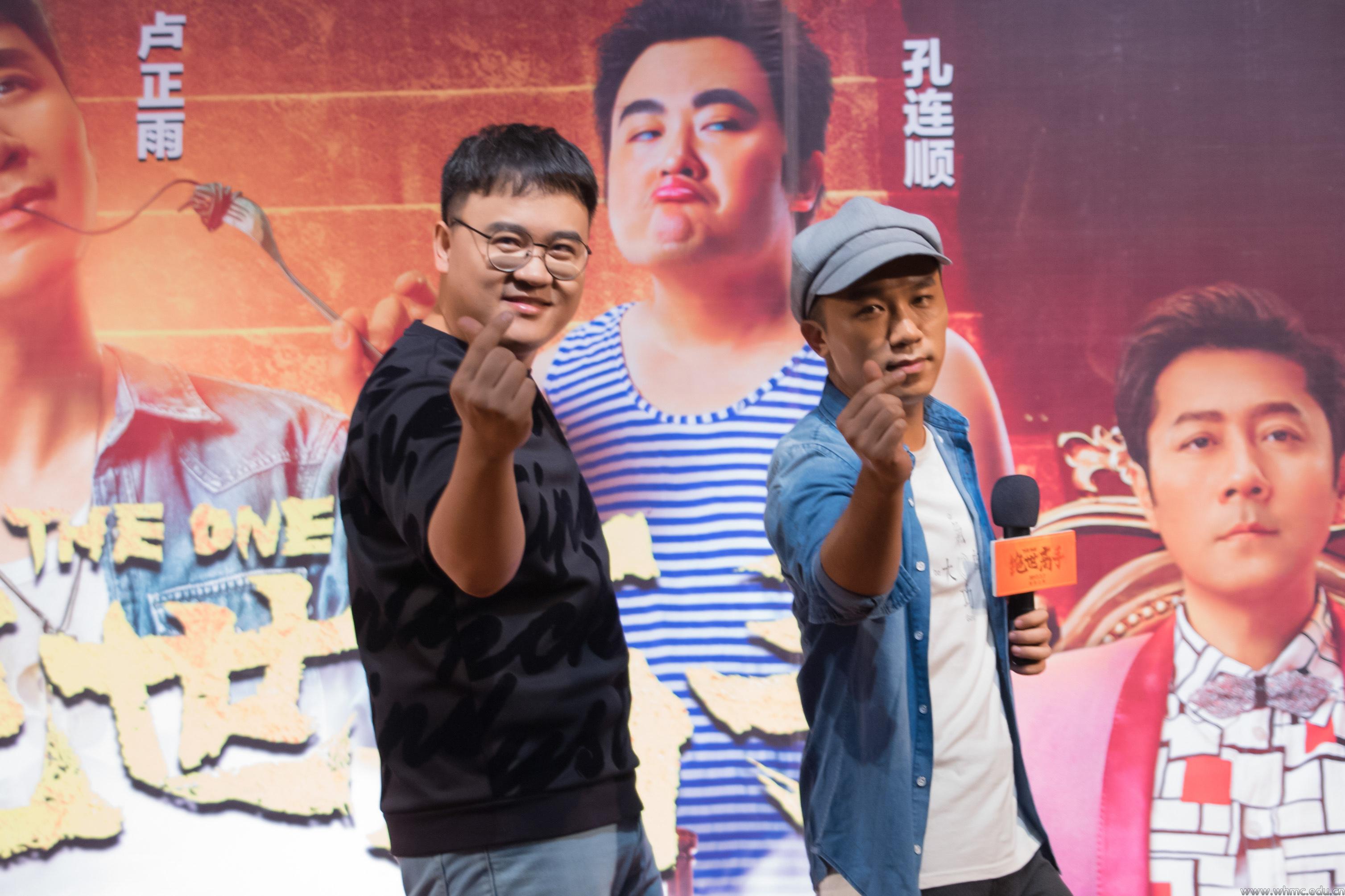 武传新闻网讯(文/记者 周冰倩 见习记者 王通 图/摄影记者 李洁莉)6月14日下午,喜剧电影《绝世高手》校园点映暨主创见面会于我校凤凰演艺厅举行。导演卢正雨、演员孔连顺到现场与观众交流。两位主创作为喜剧演员,一到现场就“不走寻常路”,没有直接走到台上,而是从演播厅后门进入,在演播厅内飞奔,与现场观众握手互动。