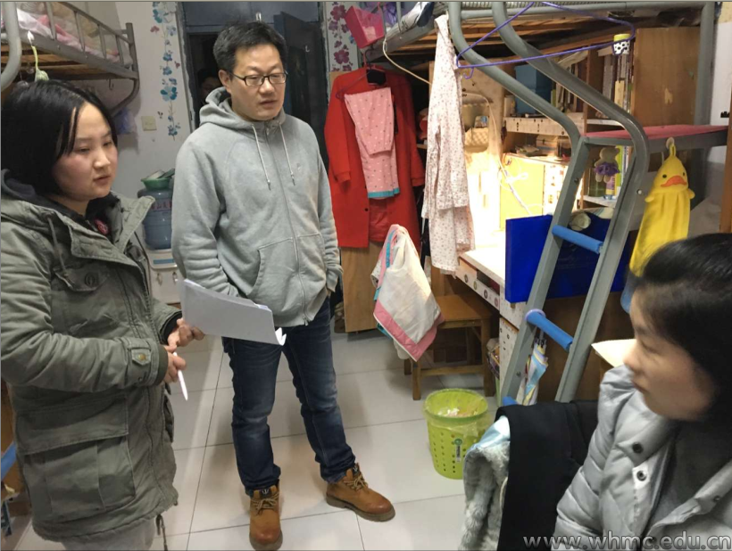 武传新闻网讯(文/通讯员 张子璇)3月15日下午18点30分,为更好地了解学生情况,新闻传播学院开始了一次全面查寝工作。新闻传播学院党总支副书记侯亮荣、广告教研室主任韩勇、学生科科长王龙、学生辅导员华金走访了该院学生寝室。