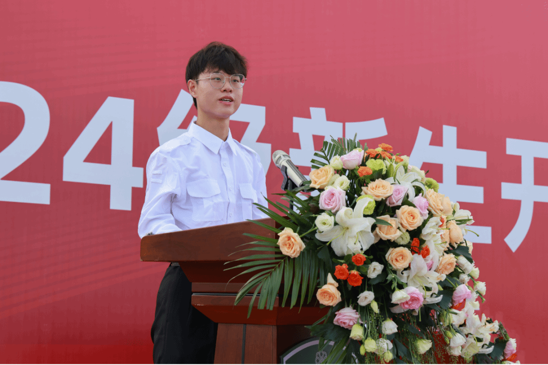 来自人文与艺术学院的蔡俊杰作为新生代表发言。对于大学生活,他表示:要挖掘身边事、书写身边人、讲好家乡故事。做家乡故事的讲述者、中国故事的传播者,做我大中华新时代的传媒人!