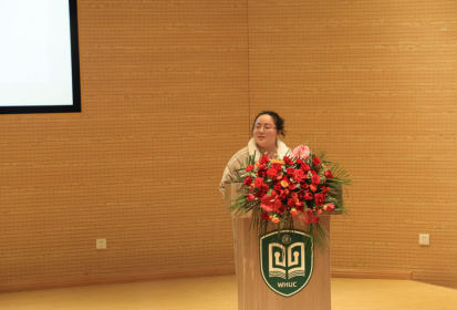 陶立军教授汇报的主题是《地方高校助力非遗保护传承和活化利用的实践路径探索——以湖北宣恩县为例》。她介绍了人文与艺术学院立足荆楚文化,探索非遗保护传承和活化利用的具体路径,并以宣恩县“滚龙连厢”为例,展现跨专业、跨学院协作成果,展现了我校在荆楚非遗传承与活化利用方面的典型成绩。