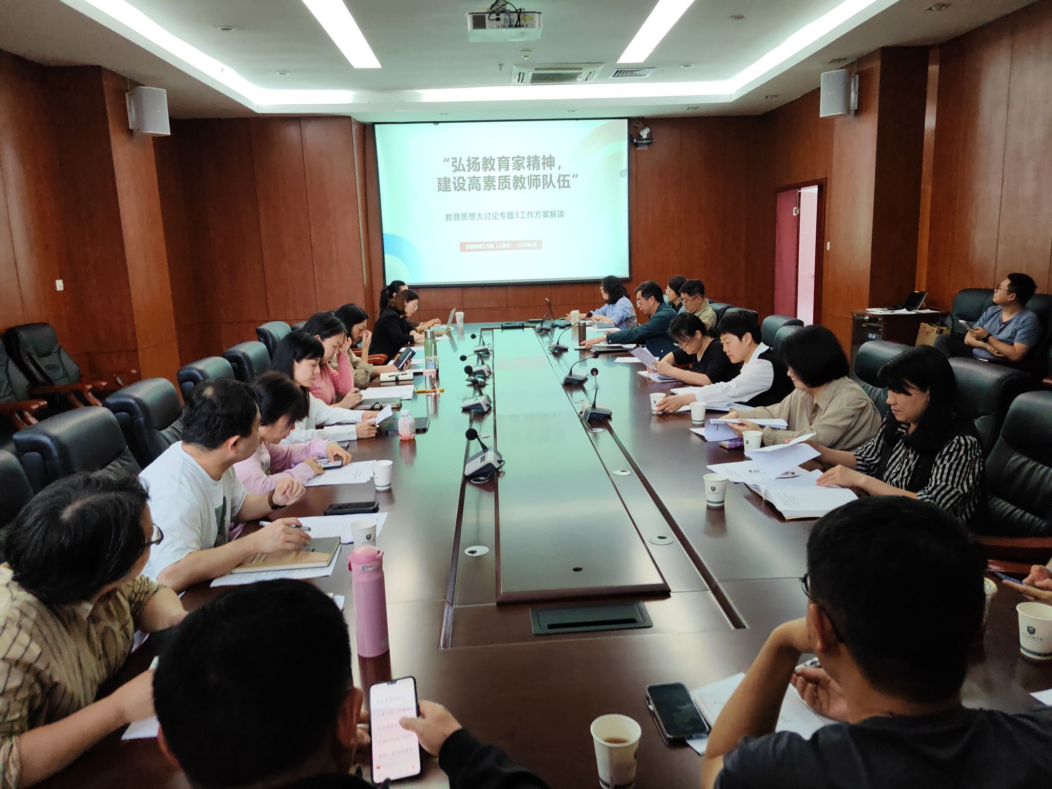 (通讯员 任晓萃)4月24日下午,米兰体育网页版登录党委教师工作部(人事处)在206会议室组织召开《教育思想大讨论》——“弘扬教育家精神,建设高素质教师队伍”专题讨论启动会。党委副书记、常务副校长宗微,党委副书记、纪委书记、校长助理蒋萦出席会议,教务处、教学质量监测与评估中心、科研与创作处、各教学单位主要负责人及党委教师工作部(人事处)全体工作人员参会。会议由党委教师工作部(人事处)副处长王静主持。
