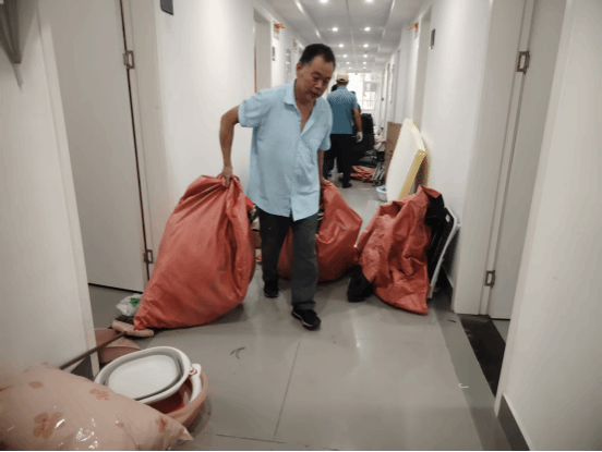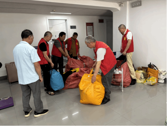 后勤处蔡能处长全程驻守宿舍区,实时关注各点位情况。“东区需增派 2 名托运人员!”“西 4 栋楼下垃圾加急清运!” 发现人员拥堵或物资短缺,他立即协调跨科室支援。看到女生独自搬运重物,他主动上前帮忙;发现退宿队伍过长,当即增开临时窗口。
