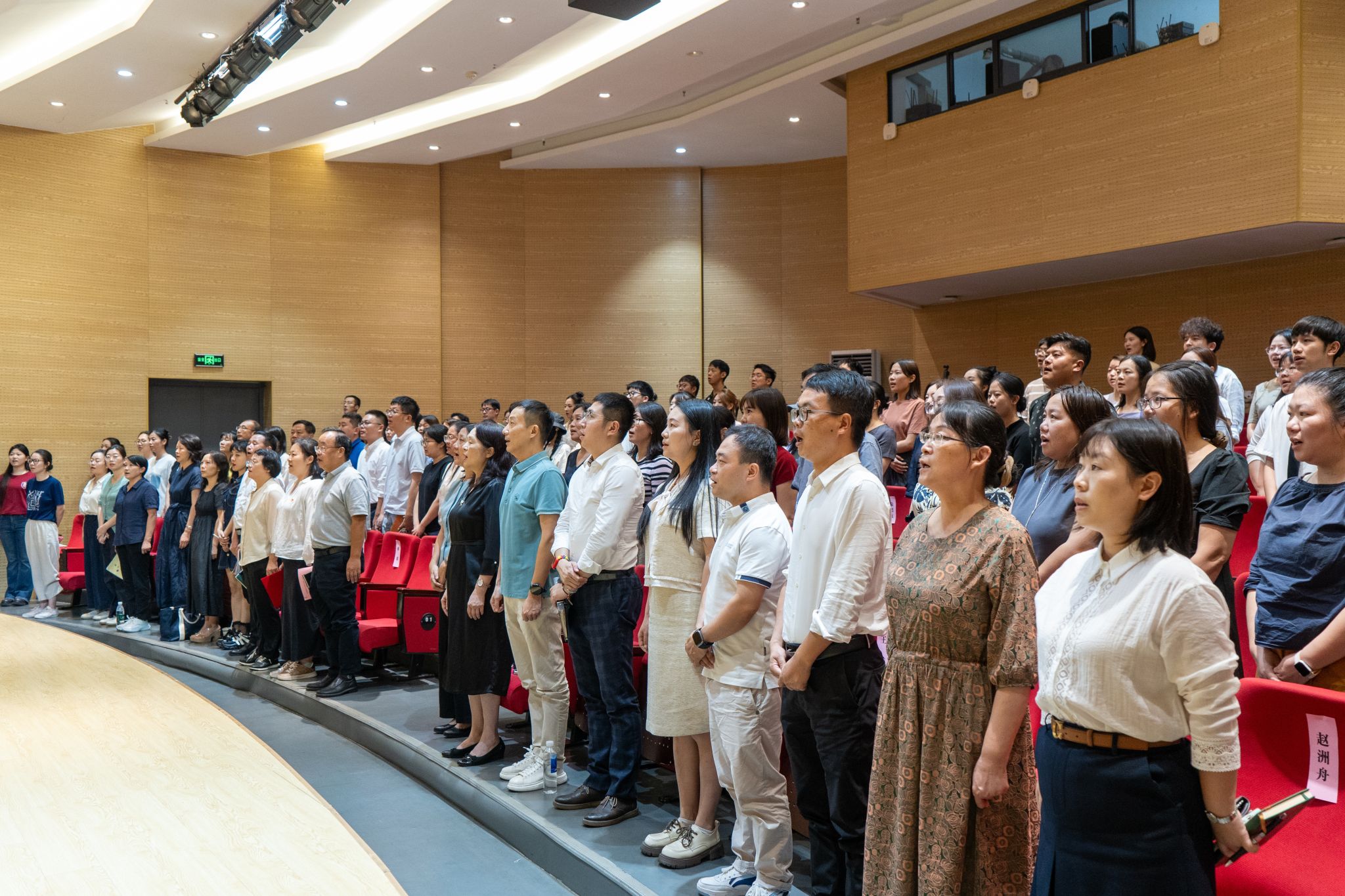 (记者 安步清 摄影记者 孟浩宇)金秋九月,丹桂飘香。9 月 9 日下午,米兰体育网页版登录圆形报告厅内暖意融融、气氛热烈,2025 年教师节表彰暨 “讲好武传故事” 事迹分享会在此隆重举行。全体校领导、党委委员,各职能部门负责人、各学院院长,各党总支部书记、各直属支部书记,以及教师代表、辅导员代表共计 100 余人欢聚一堂,共同为辛勤耕耘的教育工作者庆贺节日,为涌现出的先进典型送上掌声与敬意。大会在庄严的国歌声中正式拉开帷幕。