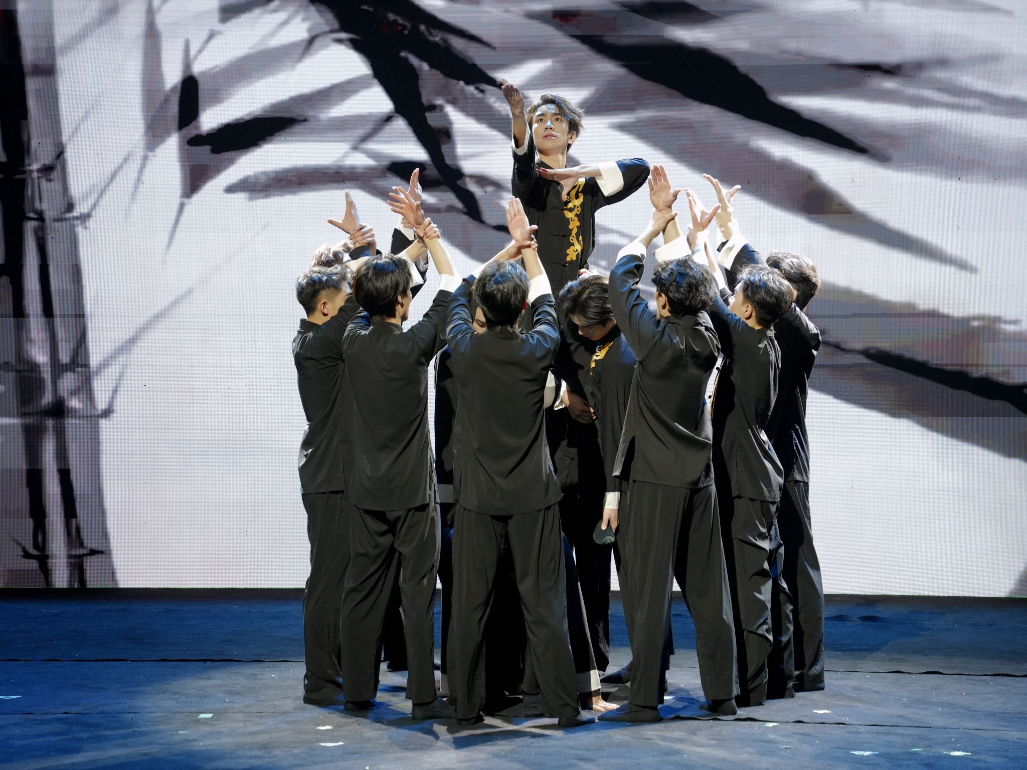 盛典现场,文艺表演与颁奖环节有序交替、相得益彰,在庄重的表彰氛围中融入青春朝气与文化底蕴,让榜样力量与艺术魅力同频共振。刚劲利落的开场舞《拳掌形意间》,以少年锐气点燃全场热情;微短剧《优秀你我他》聚焦国奖竞评现场,生动还原学子勤学笃行、互助共进的逐梦之路,引发全场共鸣;原创室内乐《乾卦西倾・隙光》融东方哲思与现代乐律于一体,诠释传统文化的创新表达;朗诵《我们在荒岛迎接黎明》字字铿锵,诉说青年坚守初心、向阳寻光的成长感悟,直抵人心;激昂的鼓乐演奏《龙腾虎跃》,奏响同心聚力、奋楫争先的时代强音;灵动的群舞《自古银杏不负秋》,将岁月敬意与尊师感恩之情融入翩跹舞步,温情动人。