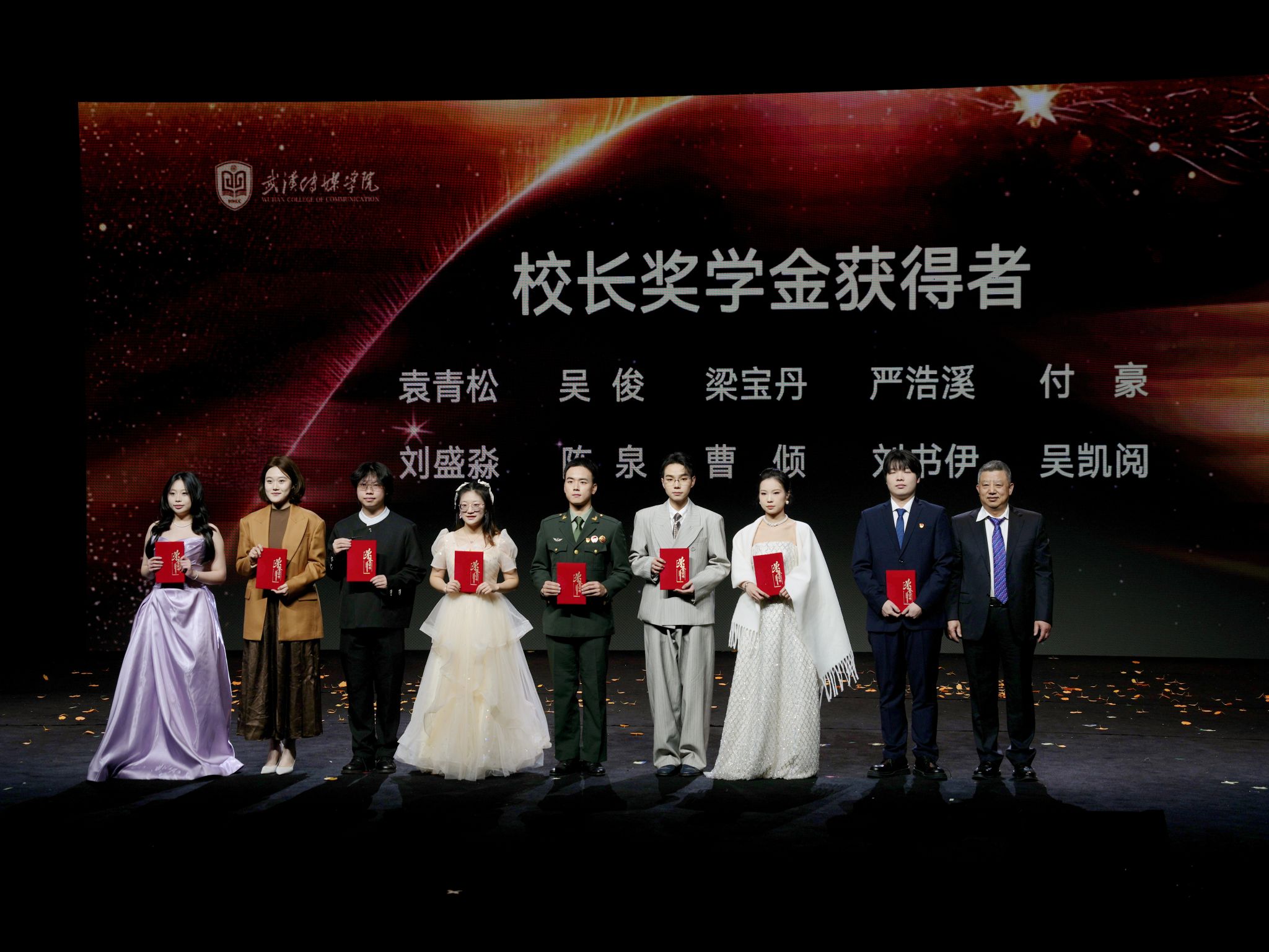 盛典伊始,星光红毯环节温情启幕。获奖师生代表身着正装踏光而来,步履从容、意气风发,尽显武传学子向阳而生的精神风貌,快门声响与掌声阵阵交织,定格下一个个荣耀闪光的瞬间。本次表彰覆盖面广、含金量足,囊括校级 “学长辅导制” 优秀成员、校级优秀团学组织及学生干部、“一年级工程” 先进集体与个人、2024-2025 学年优良学风班、优秀辅导员、优秀班主任,以及校长奖学金、国家奖学金获得者等多个类别,全方位展现学校立德树人各环节的亮眼成果与育人实效。