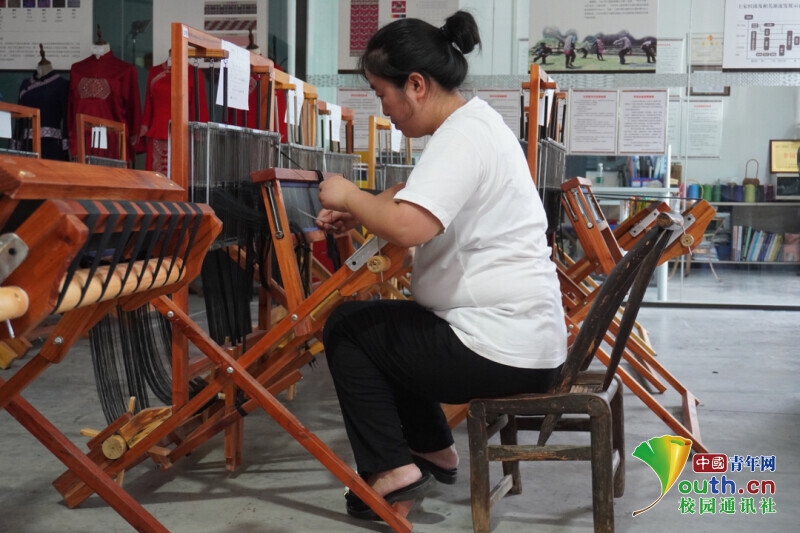 图为西兰卡普生产基地工作人员在织锦机上进行工作(中国青年网通讯员 周宇 供图)