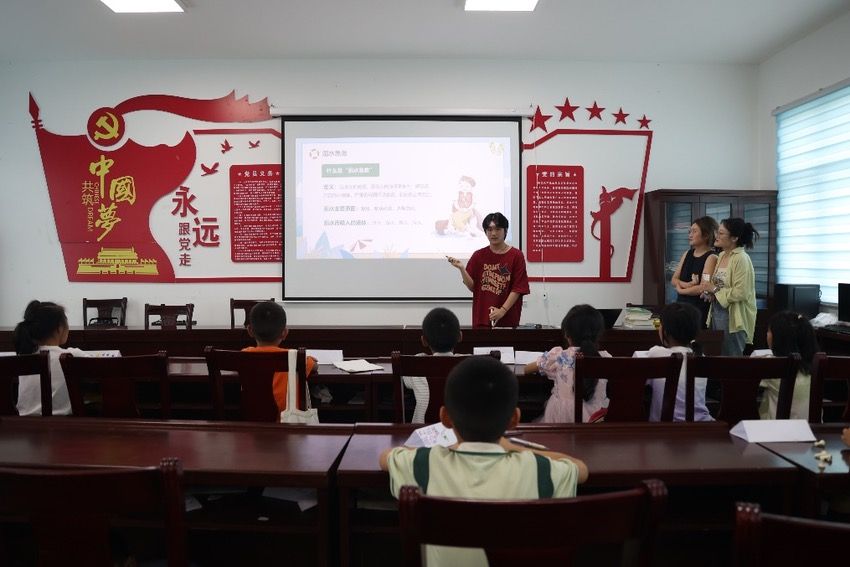 在九岗里村的社区教室里欢声笑语不断,学生团队和孩子们稚嫩的脸庞构成了九岗里村一道独特的风景。7月4日,学生团队为孩子们上了一堂别开生面的教学课。此次课堂活动主要为学生讲解远离野外危险水域、不慎落水应该如何自救、当遇到同伴落水时不要进行错误施救、溺水急救的定义、原因和措施以及游泳注意事项五个部分安全知识。通过此次防溺水安全教育课堂活动,学生们不仅学习了宝贵的防溺水知识,还增强了自我保护意识和能力。