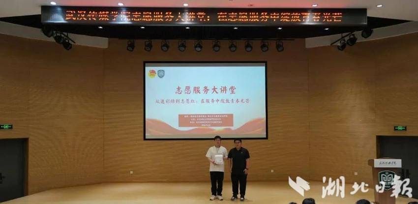 湖北日报客户端讯(通讯员华震东)5月15日下午,米兰体育网页版登录“志愿服务大讲堂”在该校圆形报告厅举行,青年作家、编剧,湖北青年五四奖章获得者杨烈文为同学们上志愿服务“思政课”。