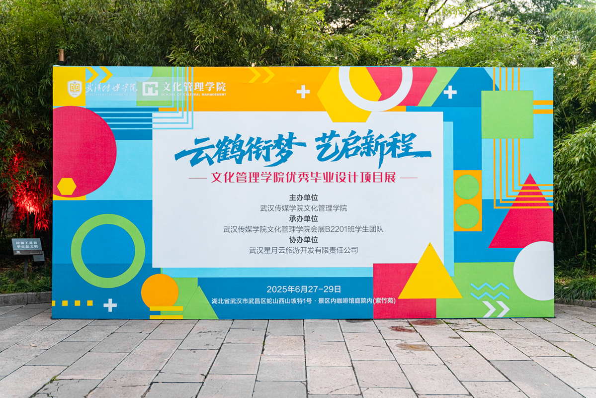 学院首次将优秀毕业设计展搬进国家5A级景区黄鹤楼,于景区紫竹苑特设“云鹤衔梦·艺启新程”专属展区。会展经济与管理专业B2201班学生团队全程主导策展工作,从展区整体规划到现场细节布置,全程深度参与、专业把控,充分展现了扎实的专业功底与实践能力。展览精选2021级电子商务、文化产业管理、会展经济与管理三个本科专业的优秀毕业设计项目,集中呈现了学院毕业设计“进景区、进商圈、进社区、进乡村”的教学改革成果。这些毕业设计紧扣真实社会需求,成果在荆楚大地落地生花,是文化管理学院深化产教融合、强化项目实战,培养高素质应用型“新商科”人才的生动写照。