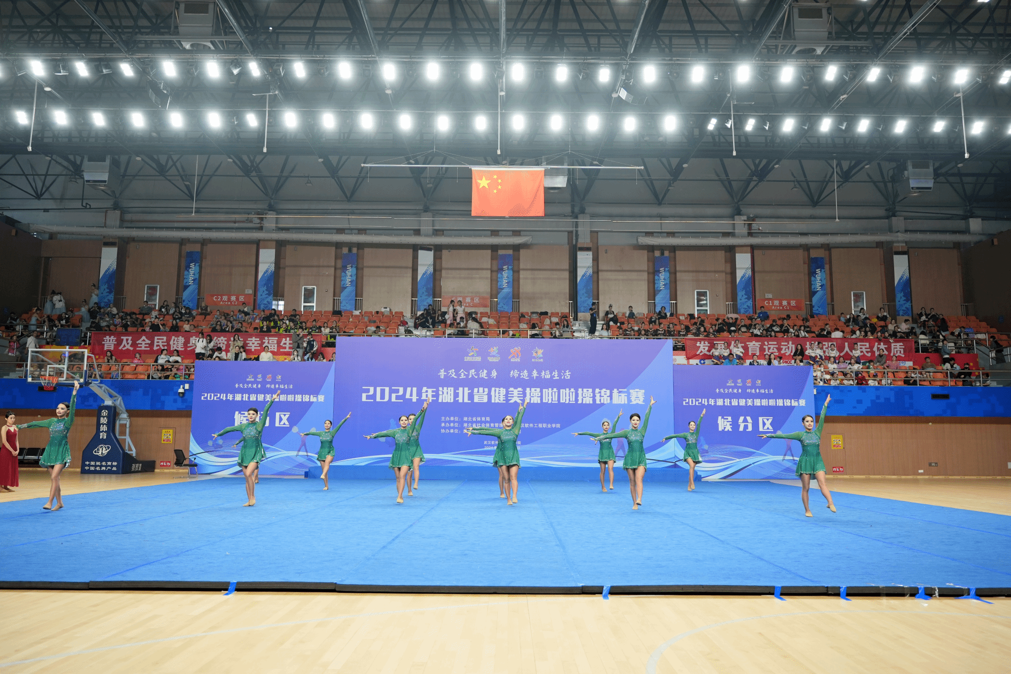 新闻与媒体中心网讯(文/记者 陈栎依 图/由金梦老师提供 编辑/徐佳仪)2024年湖北省健美操啦啦操锦标赛于11月2日至3日在武汉软件工程职业学院开赛。我校电影与电视学院薛璐、吴雨萌等13名学生代表我校在此次比赛中荣获双人爵士自选动作第一名、2021版规定爵士三级第一名的佳绩。本次比赛由我校电影与电视学院表演系主任向琬老师领队,表演系于昊老师、金梦老师、钱雨彤老师担任教练员。