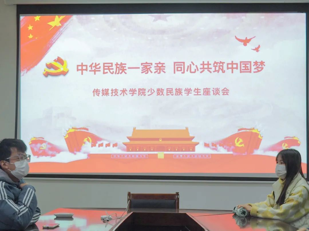 我校传媒技术学院于2021年12月15日中午12点30分在8315会议室开展了以“中华民族一家亲,同心共筑中国梦”为主题的少数民族座谈会暨“学党史,强信念,跟党走”为主题的党课。
