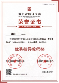 自担任创新实践中心主任以来,积极组织各类各级别的学生学科竞赛、教师们的授课比赛,先后被评为校级“优秀毕业设计(论文、创作)指导教师”、全国大学生英语竞赛“优秀指导教师”、湖北省翻译大赛笔译(专业英语B组)“优秀指导教师”。