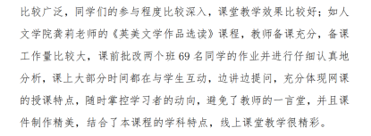 求实创新,认真开展教学、教研工作。努力将课程思政理念融入到课堂教学与教育实践中,积极利用线上教育资源,从学生的实际出发,注意调动学生学习的积极性和创造性思维,实践新理念,提高学生学习的兴趣和学习主动性。每学期的督导听课评教“优秀”,先后在学校督评简报(2020年第7期、2022年第3期)中通报表扬,并多次被评为“授课免评教师”。