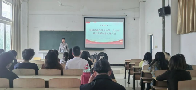 为深入学习贯彻习近平新时代中国特色社会主义思想,全面贯彻落实党的二十大精神。2023年10月8日,新闻传播学院学生第一党支部于3202教室举行确定发展对象支部大会。会议由张蓉同志主持,学生第一党支部全体成员和本期发展对象参会。